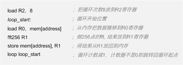 当然,这里做了很多简化,但看起来这个指令集已经可以work了。同时,这也是一个“高效”的设计,没有多余的东西。如果你要循环做8次fft,那么可能需要增加一条loop(循环)指令,要不然你就得把上面的代码copy八次。加了loop指令,汇编代码可能是下面这样。
