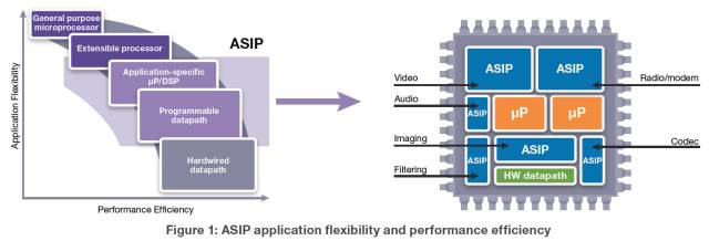 我先说说有钱的玩法吧。其实,不止你一个人想做专用处理器,很多大公司也有这样的需求。所以,就有人为这种需求专门提供了解决方案,比如Synopsys的ASIP-designer工具就是为了满足定制处理器的需求而设计的。ASIP designer支持从零开始设计和实现一个专用处理器。你可以非常自由的设计指令集和微结构,覆盖从Extensible processor,到Application-specific uP/DSP,到Programmable datapath这样一个更大的架构空间,如下图所示。这里也可以看出,这个工具的目标并不是设计通用处理器。