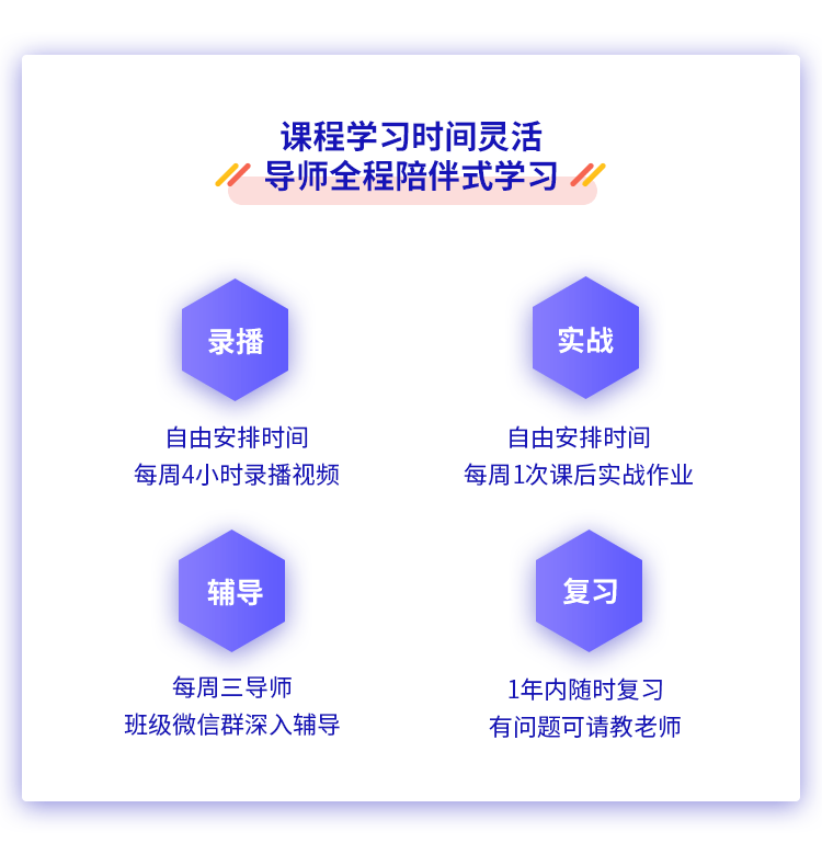4:4次大作业练习(提交后均有批改建议),4次老师班级群直播指导