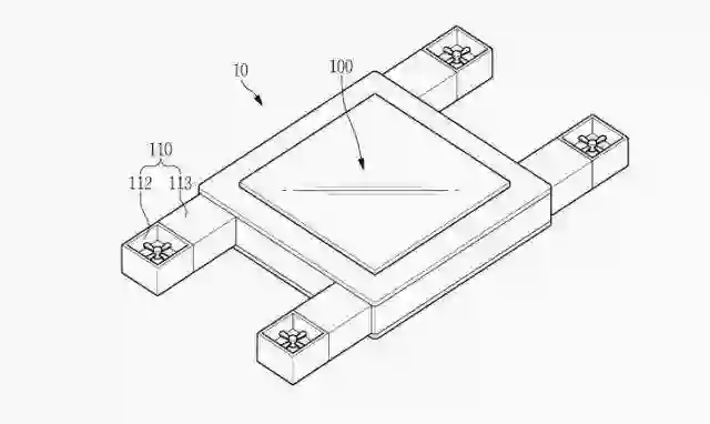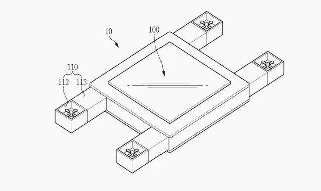 三星最近成功申请了一项将无人机和平板电子设备结合有关的技术:将四组小型电机和螺旋桨连接到一个智能屏幕。