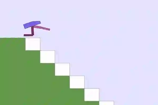 然后,在一个证明迁移潜力的演示中,该技能在 1175 次迭代时被迁移回母环境。现在,原始平坦环境中的智能体是直立的智能体,这样搜索过程就脱离了低膝局部最优。这个新的直立策略专注于新的平坦环境,能产生更快的步态。在不允许迁移的情况下,我们在平坦环境中对原始的低膝步态进行了长时间的优化,从而确认了如果没有迁移就不会发现这种更有效的直立步态(即,搜索陷入局部最优)。