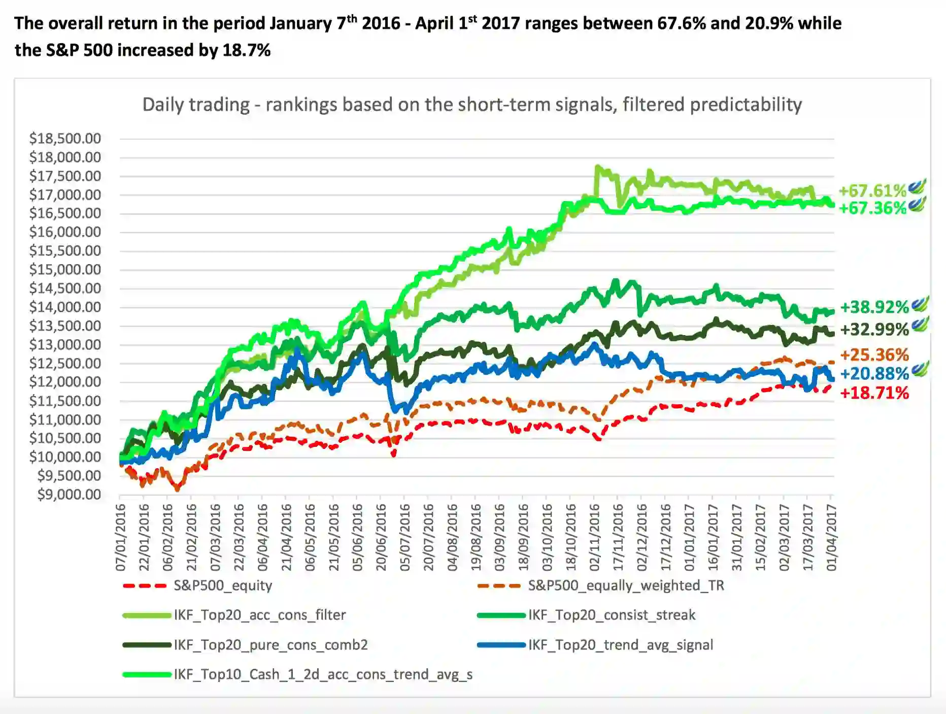Moreover, we Know First develops and back-tests systematic trading strategies which are used in partnerships with hedge funds and other asset managing entities. These strategies are rules-based and utilize algorithmic forecasting indicators mentioned above in order to rank and select the trades as well as the time the execution. The type of strategies varies, including mean-reversion logic and more trend focused approaches, all generating high positive alpha while keeping beta in the 0.3-0.8 range, yielding overall high risk-adjusted returns. The strategies can be used in partnership with I Know First to launch hedge funds, mutual funds or other investment vehicles.