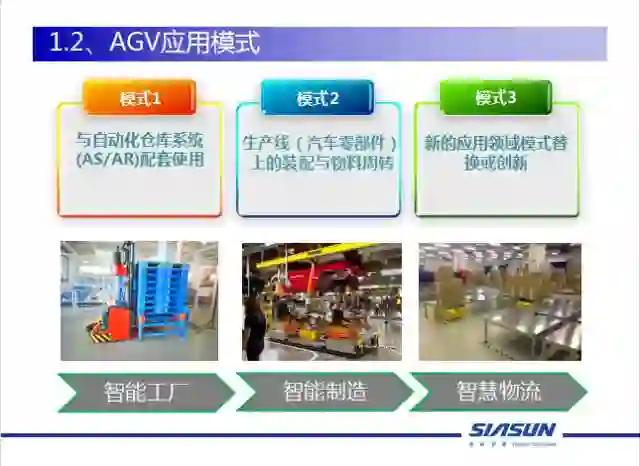 整个AGV的应用模式,传统是两种模式,一个是与自动化立体仓库的对接,比如激光叉车,还有就是一般工业生产线上的物流装配与物料周转,像汽车装配线,包括汽车物料输送。第三种模式,主要是一些AGV新的应用领域的模式替换和创新。比如说比较火的,像智能停车库、电子商务无人仓。总而言之,AGV这种产品主要还围绕着工业4.0智能工厂、智能制造、智慧物流这三大主题展开。