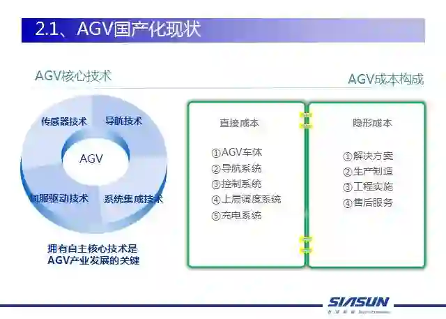 最后是整个AGV产品降低成本的措施非常关键,现在好多业主认为AGV价格比较高,难以接受,我个人认为搭建本地化产业链是降低AGV成本最有效的手段,因为目前好多零部件依赖进口,国内供应商做好这方面工作的话,AGV成本将大幅度降低。