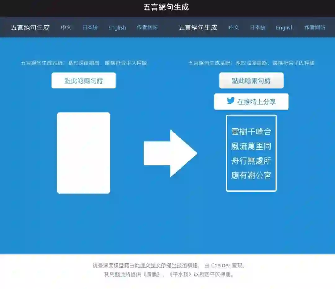 一个活生生的例子(虽然论文中没有提及),下面用论文的方法搞了一个小应用:同步执行生成这是一个以神经为基础的五音节汉语四行诗词,忠实地遵循偶数诗句中的押韵和严格的声调交替模式——它是基于我们在ICLR2018的论文中提出的想法。