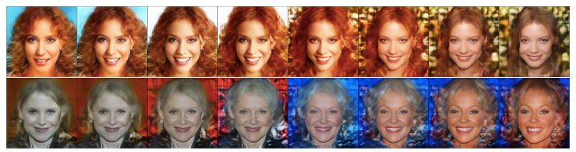 图 5:在 CelebA-HQ 上以 1024×1024 的分辨率得到的插值实验结果