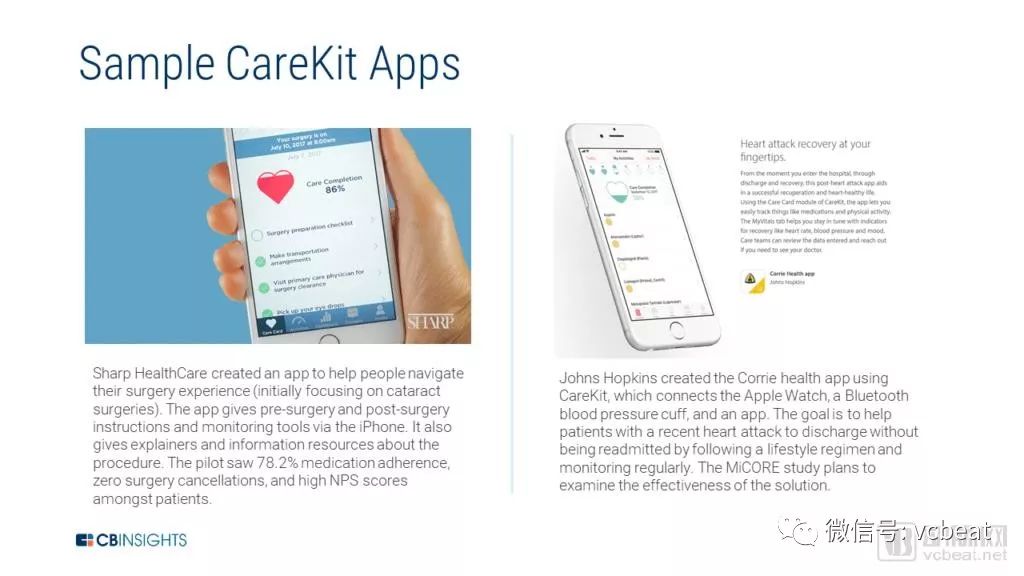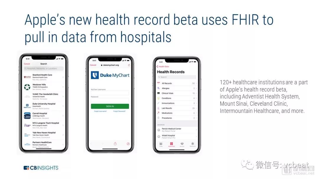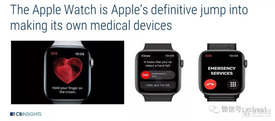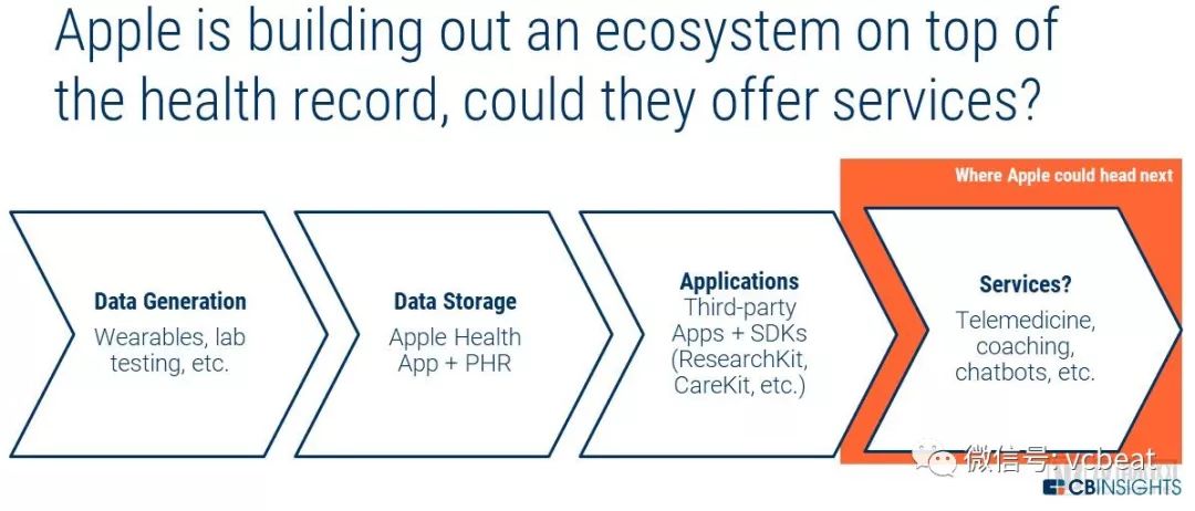 根据CBinsights的观点,随着苹果的Health Record和带有单导联心电图的Apple Watch发布,Apple显然已经正式进入医疗保健领域。