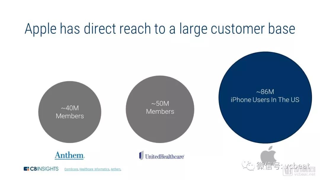 与各大健康集团相比,苹果的用户群数量(来源:CBinsights)