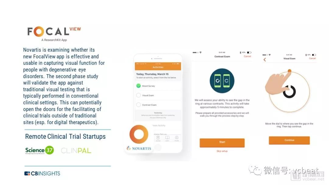 诺华在FocalView上更进一步地进行研究,FocalView应用允许研究人员通过手机上的自我报告和工具实时监控眼疾进展。第一步是评估应用程序判断视觉功能的能力,如视力和对比敏感度。