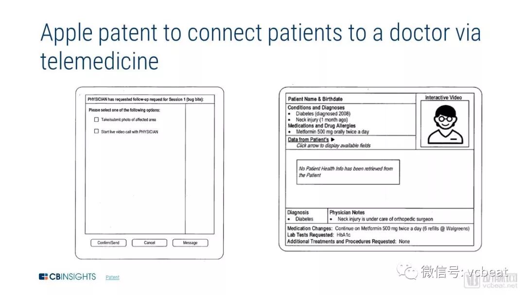 在连接患者和医生方面,Apple通过在远程医疗方面的专利将二者连接。该专利允许用户使用设备发起远程医疗会话并授权向医生使用某些数据,同时会显示主治医生的后续行动。