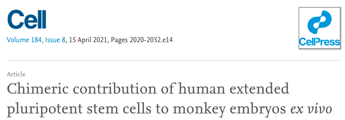 2021年4月15日,谭韬教授作为第一作者再发Cell ! 用人猴「杂交」胚胎做实验,证明了实验方法可以在进化距离较远的物种之间增强嵌合性。
