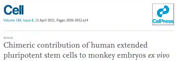 目前,这篇论文Chimeric contribution of human extended pluripotent stem cells to monkey embryos ex vivo已经发表在最新一期的 Cell 杂志上。