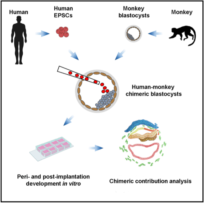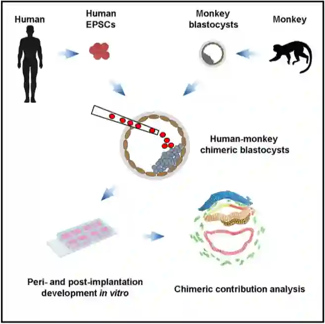 因此,他们从人猪嵌合胚胎研究转向人猴嵌合胚胎的研究。