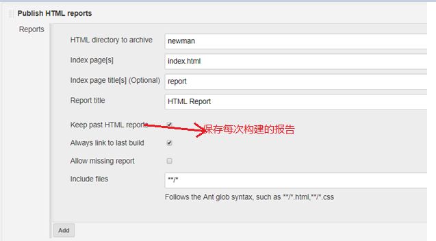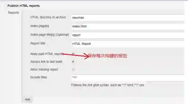 进入Test详细页面->Configure-> Post-build Actions->Add post-build action(Publish Html report)