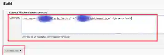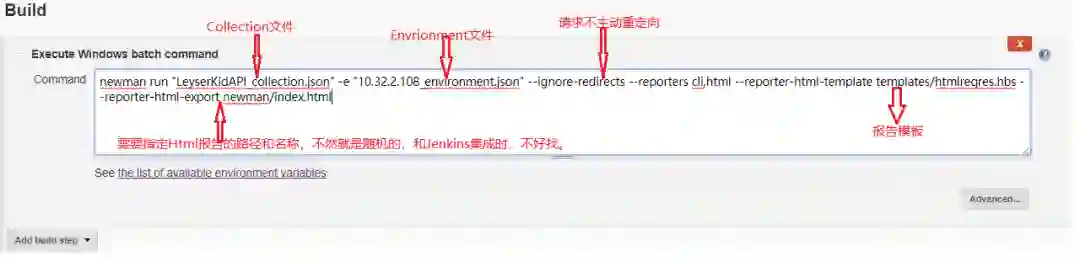 进入Test详细页面->Configure-> Execute Windows batch command->command