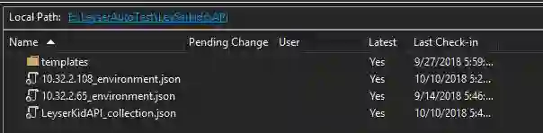 TFS创建项目LeyserKids,追加Postman导出的JSON文件,进行资源版本管理。接下来展示的项目结构如下: