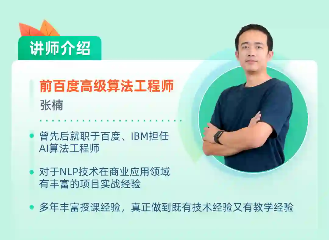前百度高级算法工程师张楠老师手把手教你学会NLP文本分析,让你3天吃透词向量、Transformer、BERT等重要知识点。