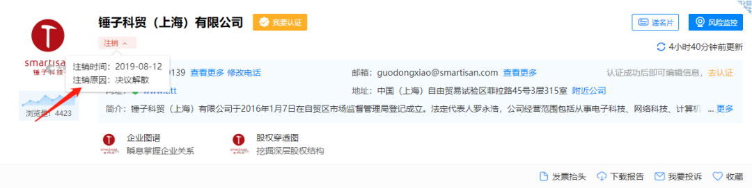 今天有消息显示,天眼查显示锤子科贸(上海)有限公司注销,注销时间是2019年8月12日,注销原因是决议解散。