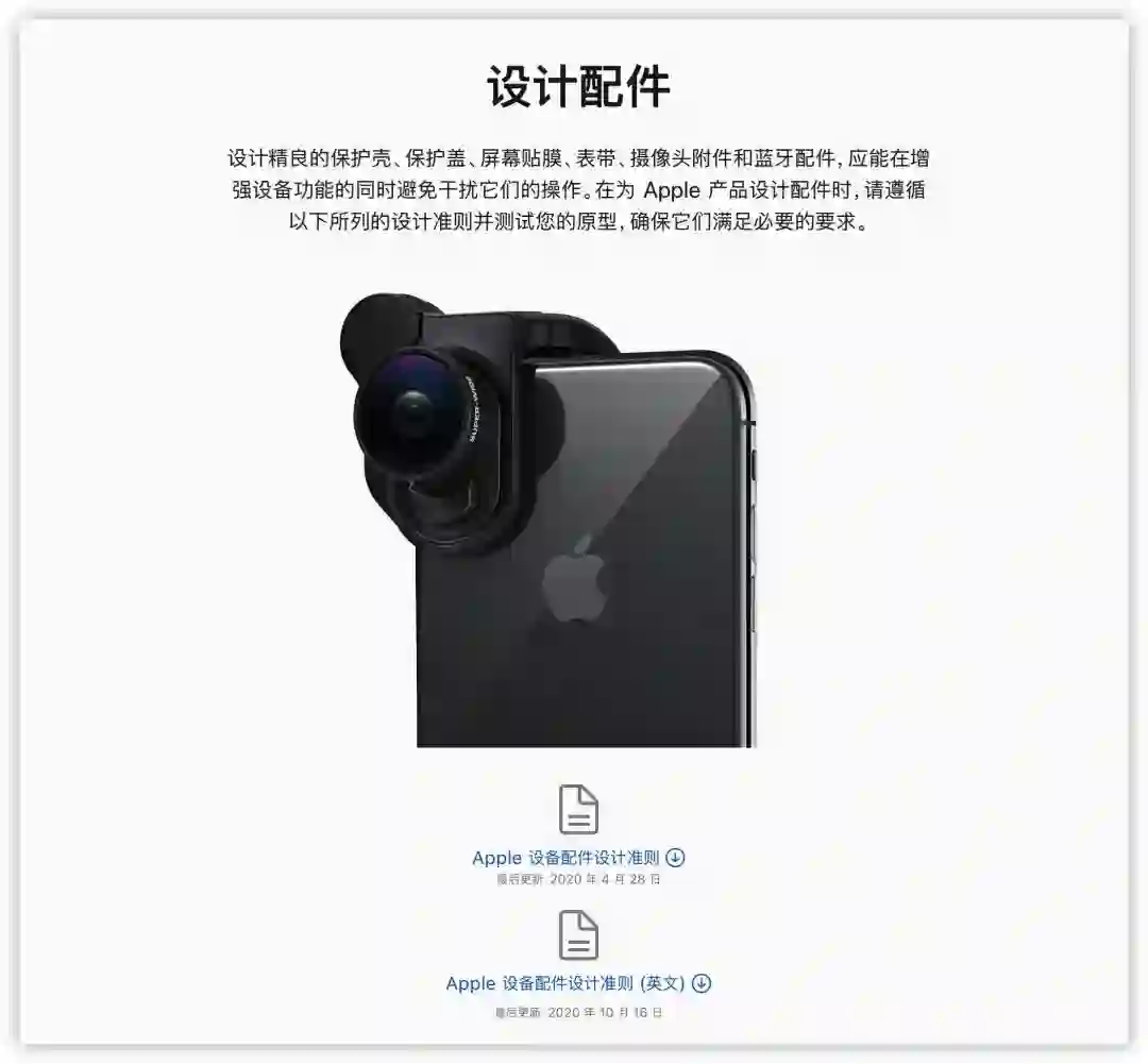 这是苹果面向第三方配件厂商公开的设计准则,其中详细地写明了针对不同苹果产品的配件设计标准,甚至还包含了不同苹果产品的设备尺寸图。