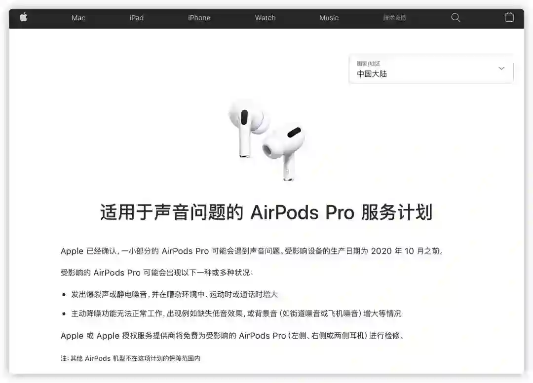 Apple 服务计划提供了包括更换计划、维修扩展计划和召回计划等在内的查询服务,最新的案例是适用于声音问题的 AirPods Pro 服务计划。