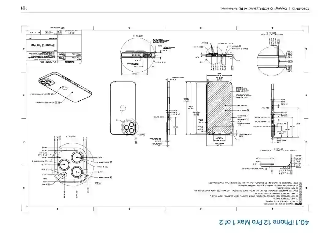 这些工程制图展示了更多苹果官网没有公开透露的信息,例如许多人都觉得今年的 iPhone 12 系列屏幕边框厚度和去年的 iPhone 11 系列一样,但通过查阅这些设备尺寸图可以得知,今年的 iPhone 12 系列的屏幕边框为 3.47mm,比去年的 iPhone 11 Pro 系列的 4.45mm 窄了不少。