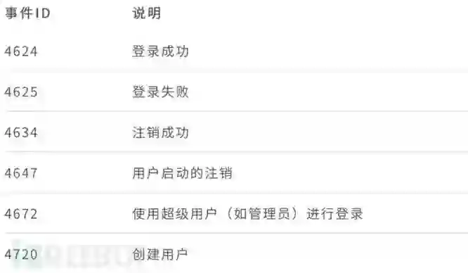 对于 Windows 事件日志分析,不同的 EVENT ID 代表了不同的意义,摘录一些常见的安全事件的说明:
