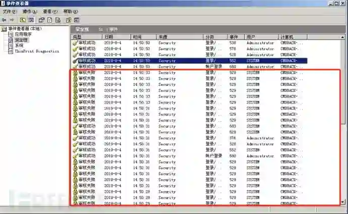 我们来拿3389远程桌面服务端口来说一下,当我们知道攻击者是通过远程桌面登陆到服务器的,那么我们就可以查一下他们是怎么登陆进来的?首先我们需要问一下3389是否对外网开放,是否开启了地址白名单限制、密码是否是弱口令等问题,我们来看一下服务器日志记录了什么,通过与管理员沟通,发现密码是123456?????这是什么操作?再结合日志分析出攻击者前期做了密码破解的攻击,我这个是2003的服务器,无法统计登陆失败的事件的次数。如果是这样的话我们需要与客户沟通在不影响业务的前提下封掉3389端口、修改口令强度。小白提醒一下,即使管理员修改了3389端口,攻击者也照样会通过端口扫描扫出来的。为了避免这种情况发生,我们可以采取白名单的策略、绑定MAC地址、设置登陆失败几次就可以锁定用户。当然有更好的策略能够限制爆破也是可以的。