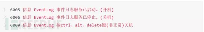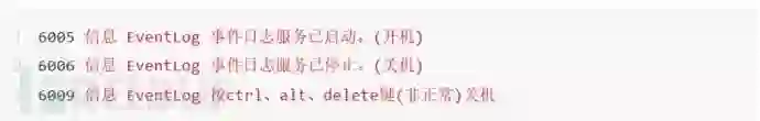 其中事件ID 6006、ID 6005、ID 6009就表示不同状态的机器的情况(开关机)。