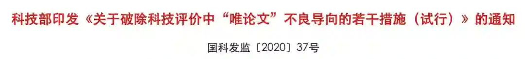 刚刚, 科技部正式印发《关于破除科技评价中“唯论文”不良导向的若干措施(试行)》通知,明确要求破除科技评价中过度看重论文数量多少、影响因子高低等“唯论文”不良导向。
