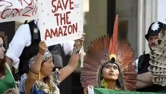 2019年8月23日,英国伦敦,民众集会呼吁巴西政府采取措施控制亚马逊雨林大火。