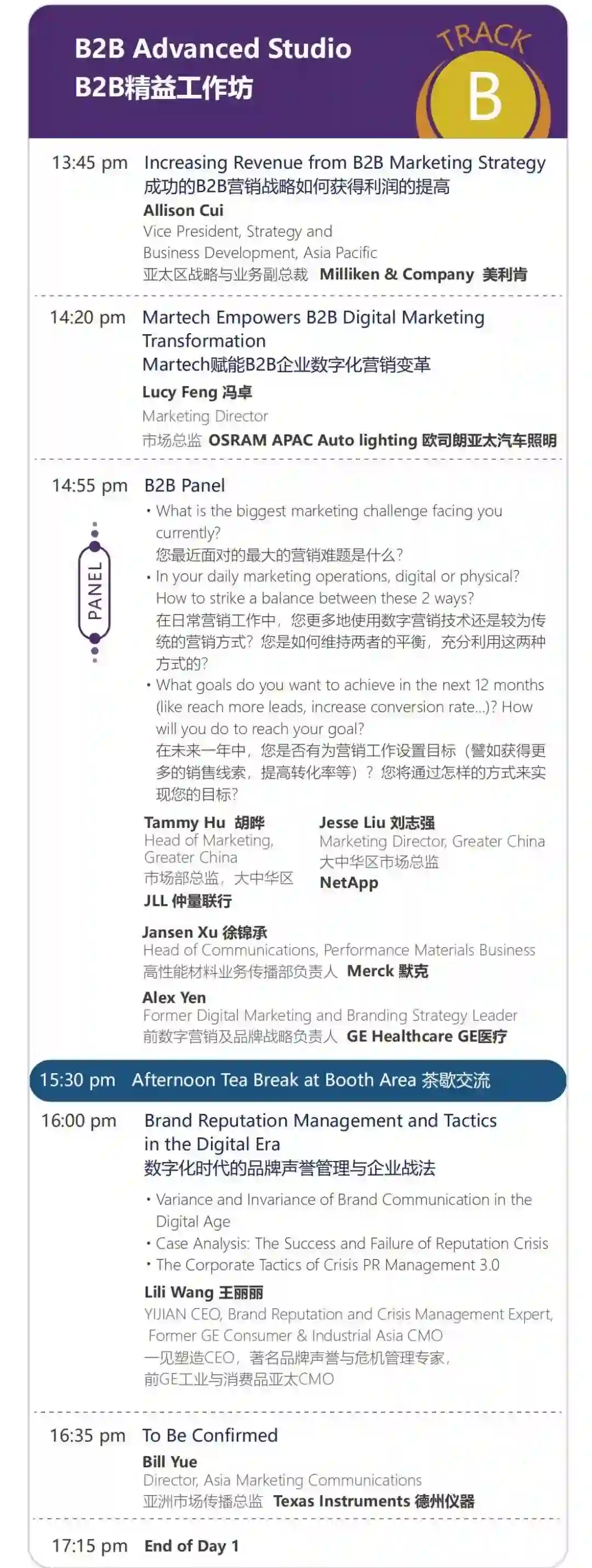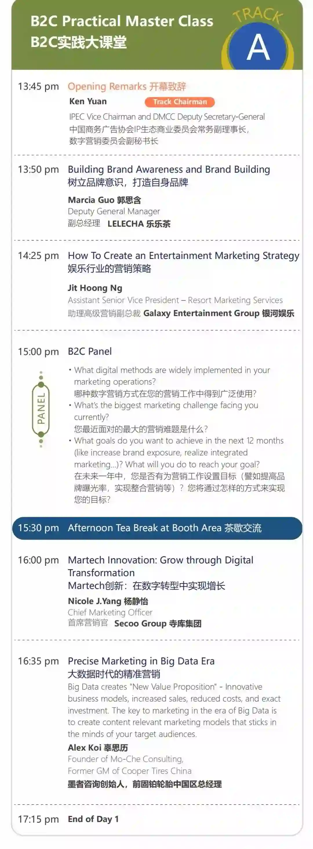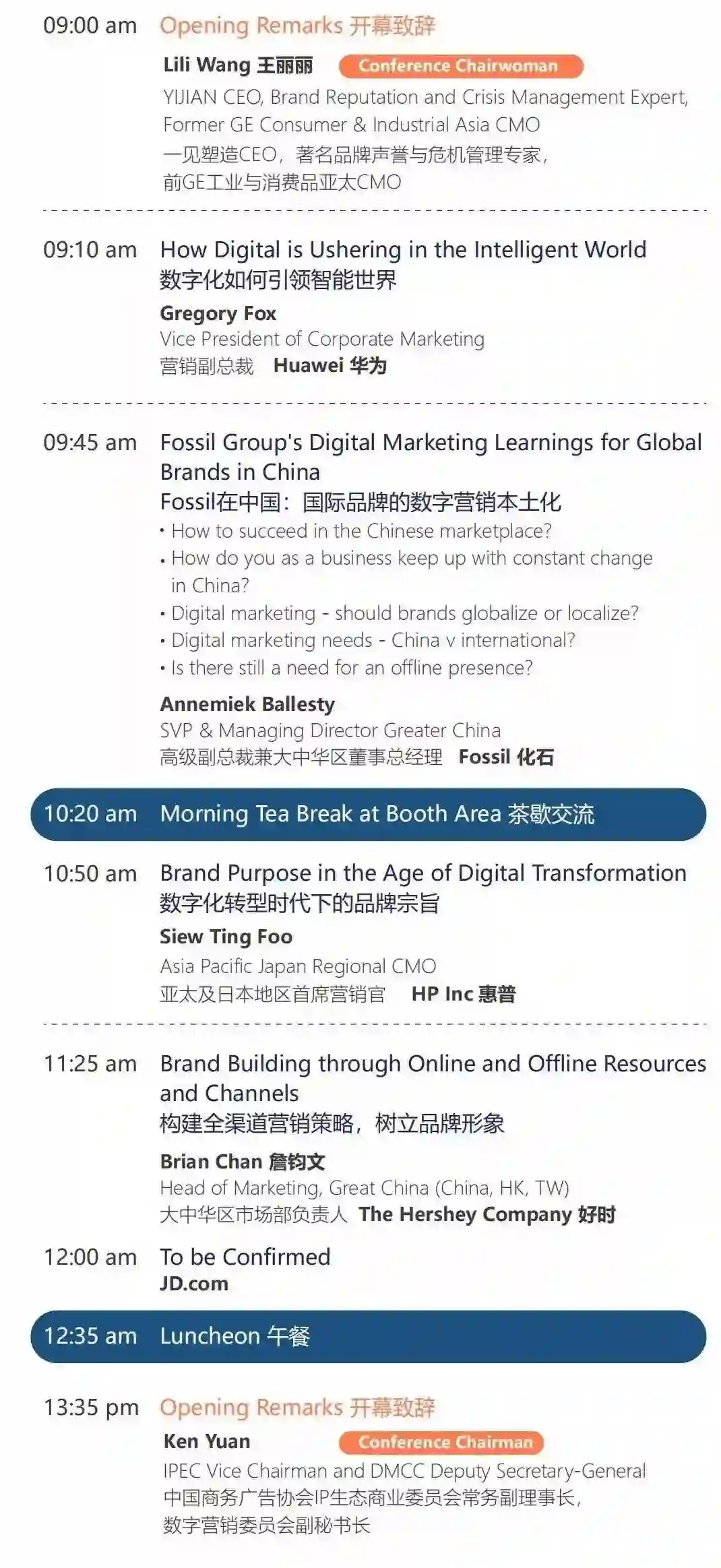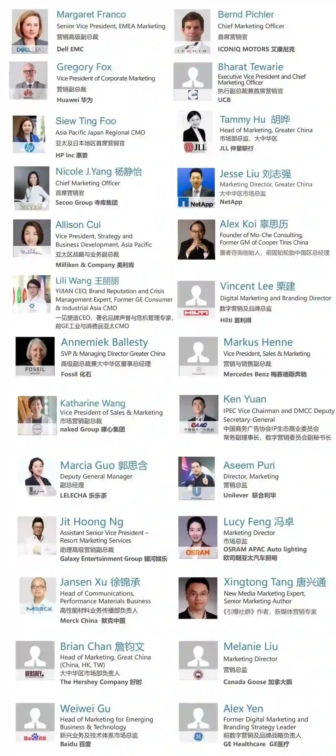 LELE CHA乐乐茶副总经理、惠普亚太地区CMO、前GE工业与消费品亚太CMO的都将作为主题演讲嘉宾出席本次峰会。