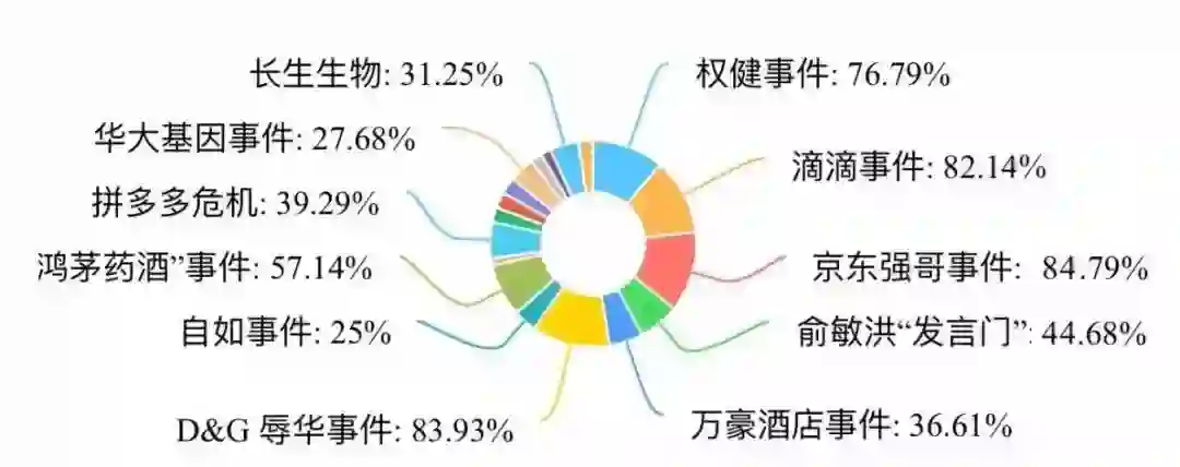排名前5的危机事件分别是:强东事件,D&G辱华事件,滴滴事件,权健事件和鸿茅药酒事件。