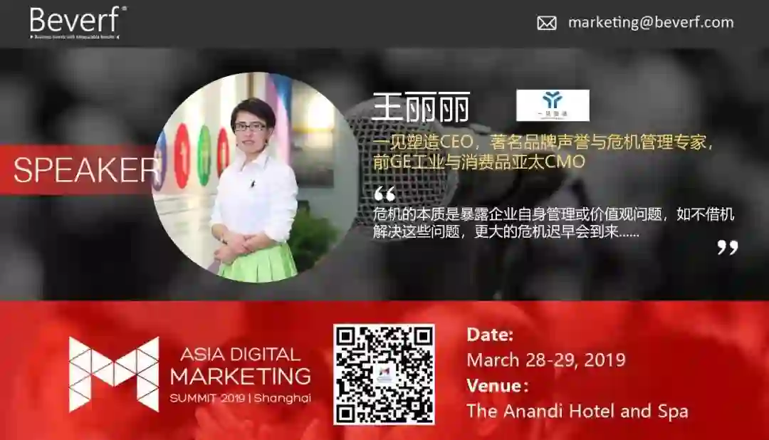 著名品牌声誉与危机管理专家,前GE工业与消费品亚太CMO,王丽丽女士认为: