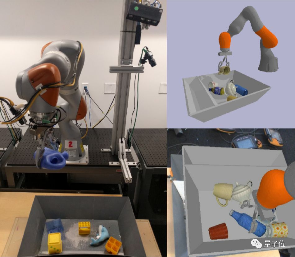 在硬件方面,谷歌团队与X Robotics合作,调教出一个能够无目的、像婴儿抓阄一样抓住物体的机器人手臂,并在训练过程中让它学习各种物体的表征,最终实现“有目的”地抓取某个确定的物体。