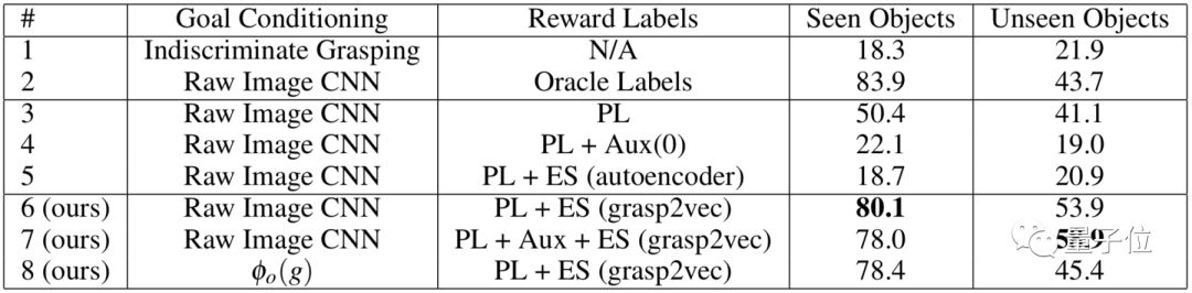 然而,针对机器人对物体的感知理解,设计奖励函数要困难得多。向机器人提供期望被抓起物体的图片,在机器人试图抓住该物体后,它会检查抓取的内容。