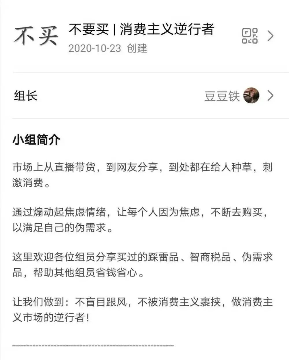 在豆瓣、在小红书、在B站,他们自觉组成“反消费主义”联盟,一边劝其他人不要买、不值得,一边积极寻找折扣、平替,拼多多、临期超市、1688都成为他们淘货的热土。