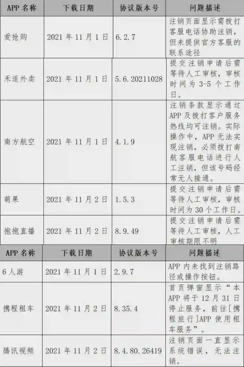 思南和小鱼遇到的情况不是孤例,此次被中消协点名的20款App在注销账号上还存在很多问题。