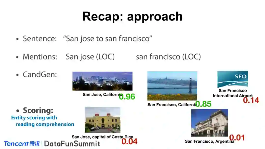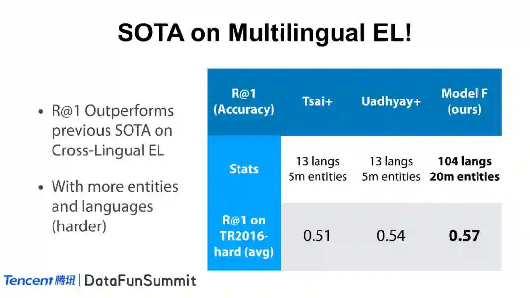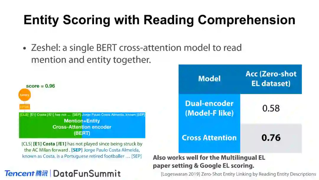 另外一个挑战就是对于少样本尾部实体的链接。有些模型对头部实体的表现会比较好,然而每天都会有新的人物、产品、专辑以及事件会出现,对于这些新的实体,是否能有效地进行链接;