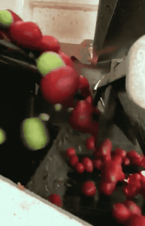 因为速度极快,梅核又很小,吹来吹去的颜色还一样,动图会看得不清晰。为了说明这种方式真的很高效,我们给出青红番茄色选机的粗暴示范
