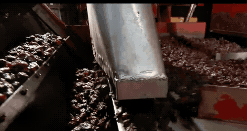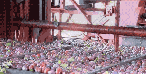 同时机器再不停的振动西梅们,让它们均匀的分布,使得落在托盘上的数量都差不多。