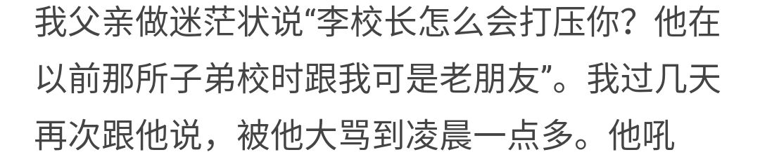 当然,李伟父亲所有的管教都是“为了他好”,包括打他,恐吓他,不准他学喜欢的文科,逼迫他学讨厌的物理,这一切都是出于爱他。