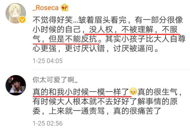父母完全无视孩子的崩溃,只在乎如何驯化孩子,让她一遍遍地承认自己的错误,逼迫她向父母的权威和规矩就范。就如同王猛的父母一样,一定要在孩子面前保持自己绝对的权威。