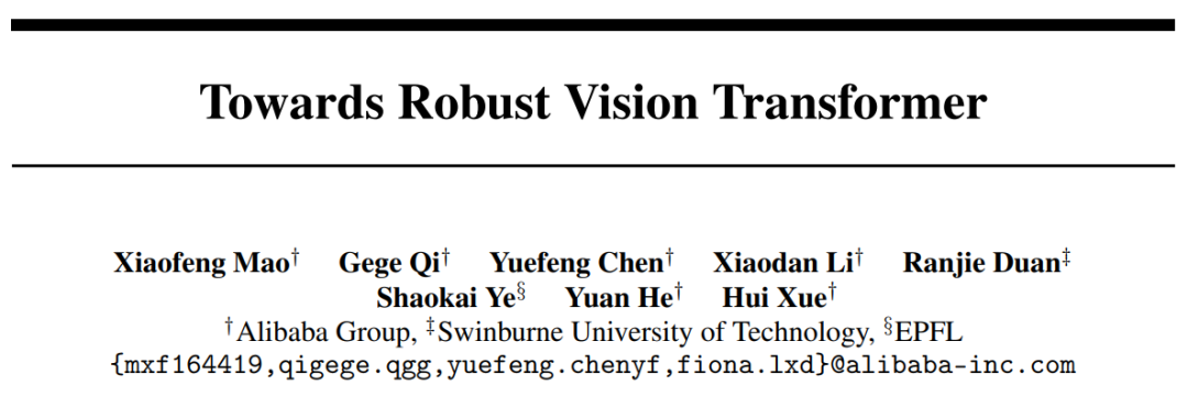 在近日被 CPVR 2022 接收的论文《Towards Robust Vision Transformer》中,阿里巴巴人工智能治理与可持续发展研究中心 (AAIG) 的研究者