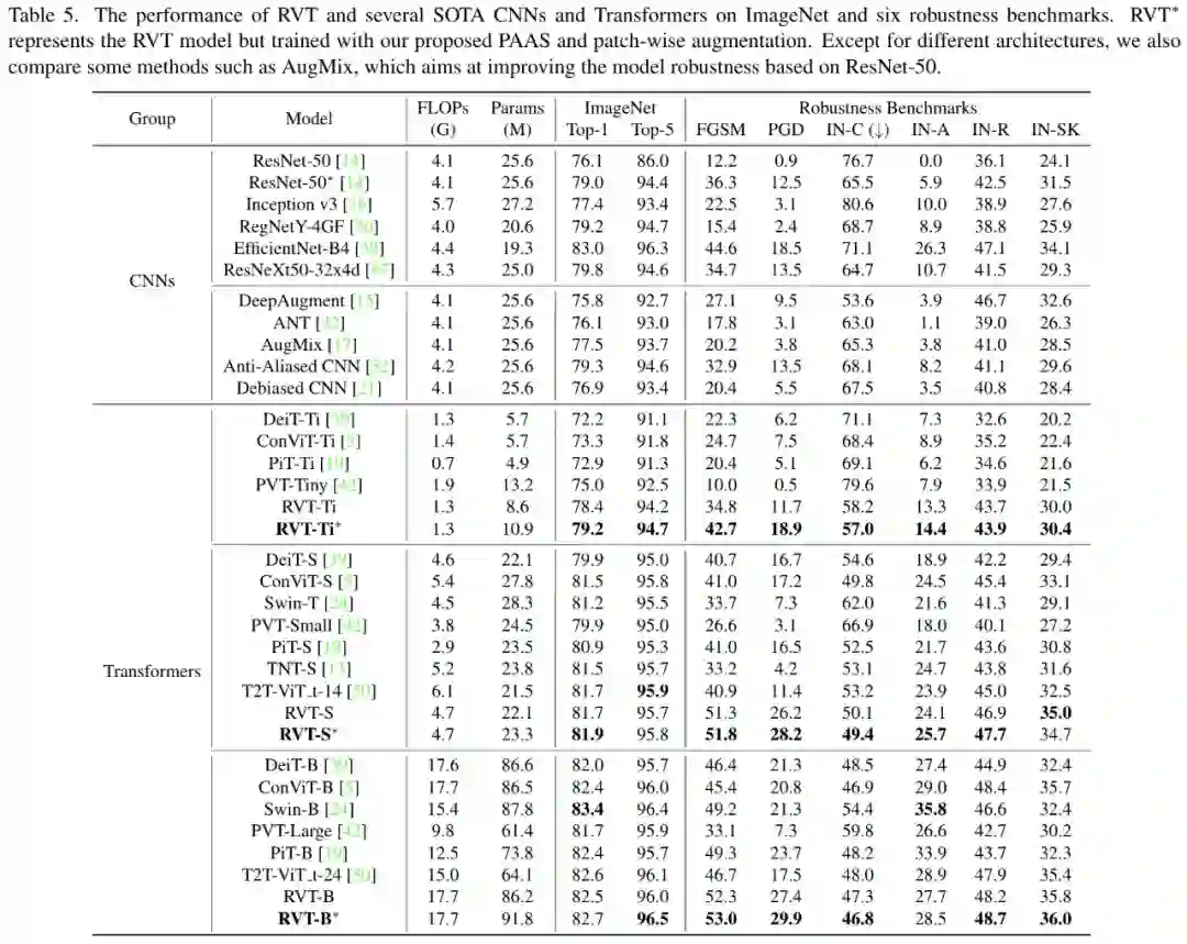 更加鲁棒的新型 ViT 模型 RVT,相比原始 ViT 模型,RVT 具备鲁棒性的同时,正常场景下识别能力更强,计算也更加高效
