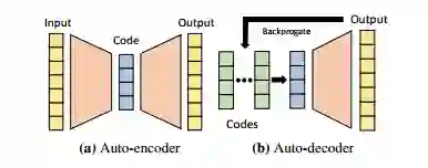 图 4:不同于由编码器生成潜在编码的自编码器,自解码器直接接收潜在向量作为输入。在训练刚开始的时候,每一个数据点都会被分配一个随机初始化的潜在向量。并且潜在向量会通过标准反向传播和解码器权重一起优化。在推断过程中,解码器权重是固定的,此时会估计最优的潜在向量。