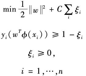 上式中的约束条件要求所有的正例和负例分别位于超平面的两侧。某些情况下,这种约束可能过强,因为我们所拥有的训练集有时是不可分的。这时候,就需要引入松弛变量