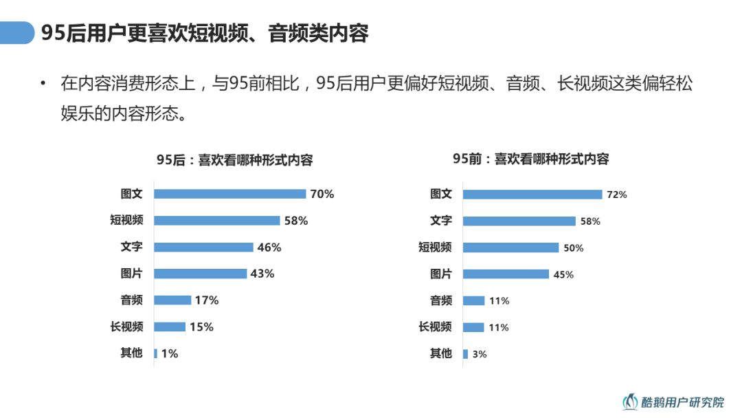 随着算法的发展,内容行业面临着新变革,竞争日趋激烈。传统的内容形态能否满足95后需求?95后喜欢什么样的内容?酷鹅用户研究院开展95后内容消费研究,发布《兴趣导向:95后内容消费洞察报告》为您揭晓。