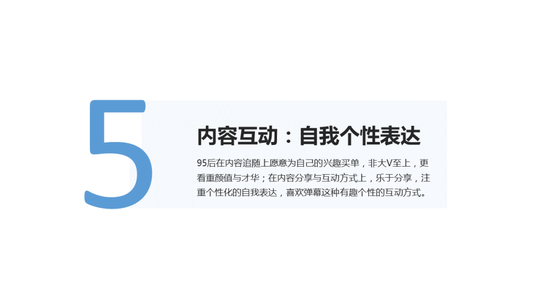 95后在内容追随上愿意为自己的兴趣买单,非大V至上,更看重颜值与才华;乐于分享,注重个性化的自我表达,喜欢弹幕这种有趣个性的互动方式。