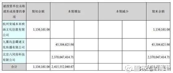 宋城演艺在2016年主要因为收购网上直播平台“六间房”使得公司当期的商誉余额达到24.17亿元,当时的六间房净资产仅0.38亿元。