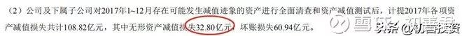 乐视网的无形资产,主要是影视版权类资产,减值损失32.8亿,是资产减值损失的一个重要部分。
